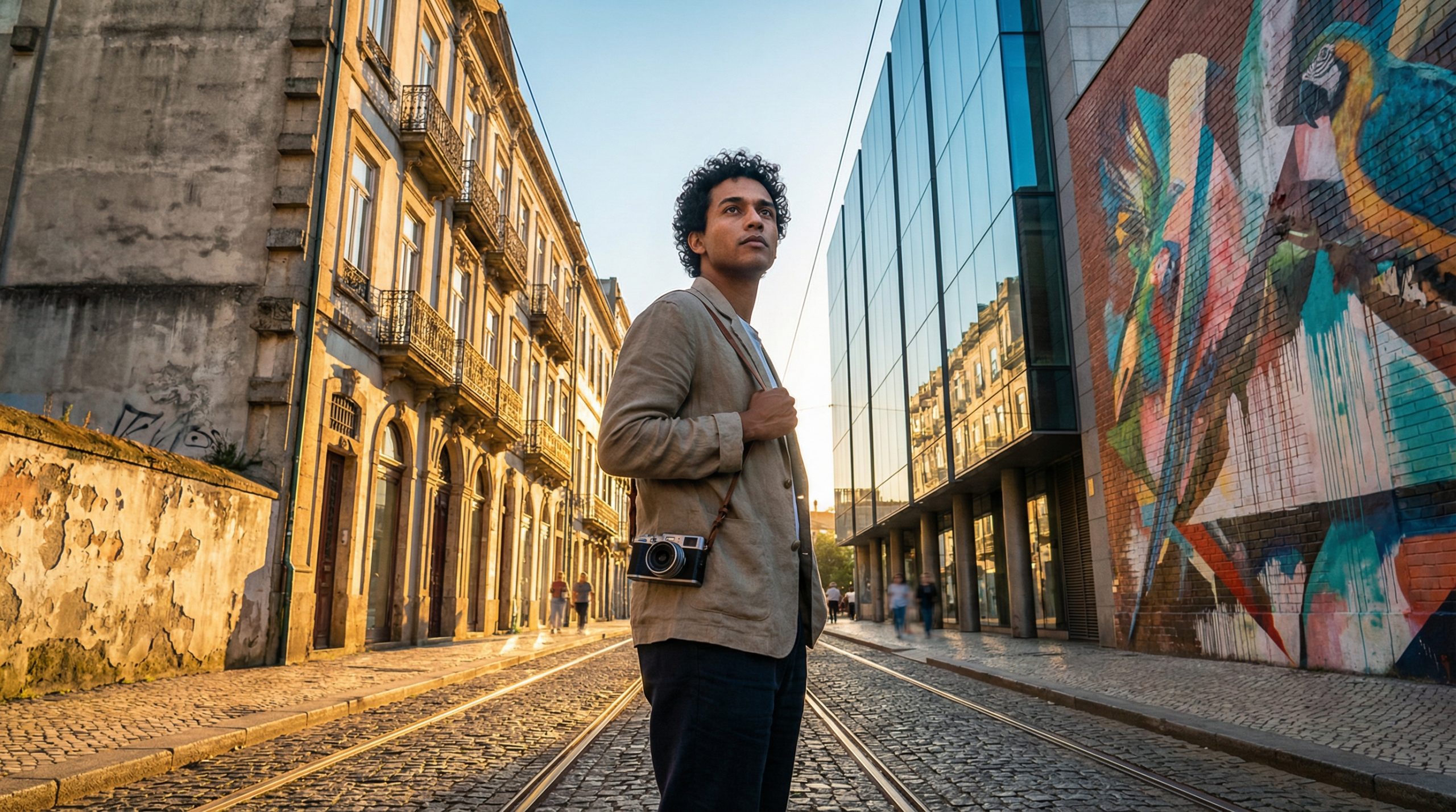 - A luz é tudo: A “hora dourada” (amanhecer e entardecer) oferece uma luz suave que valoriza texturas de fachadas e cria sombras longas e dramáticas.